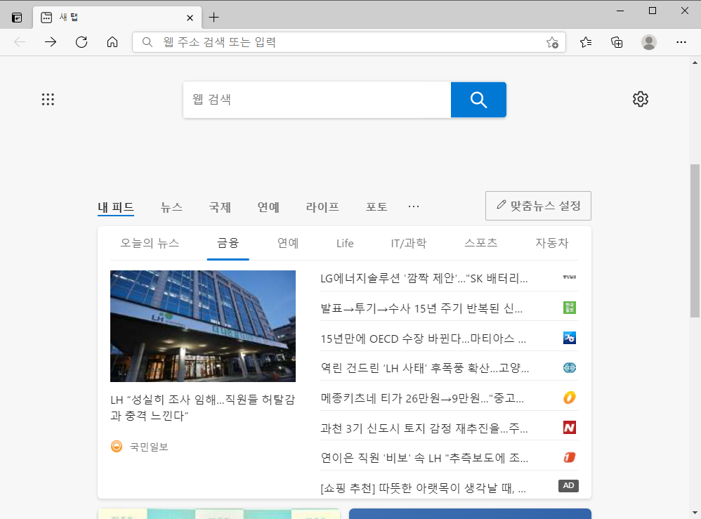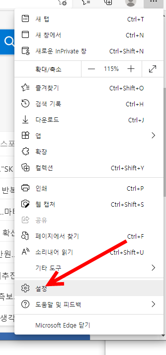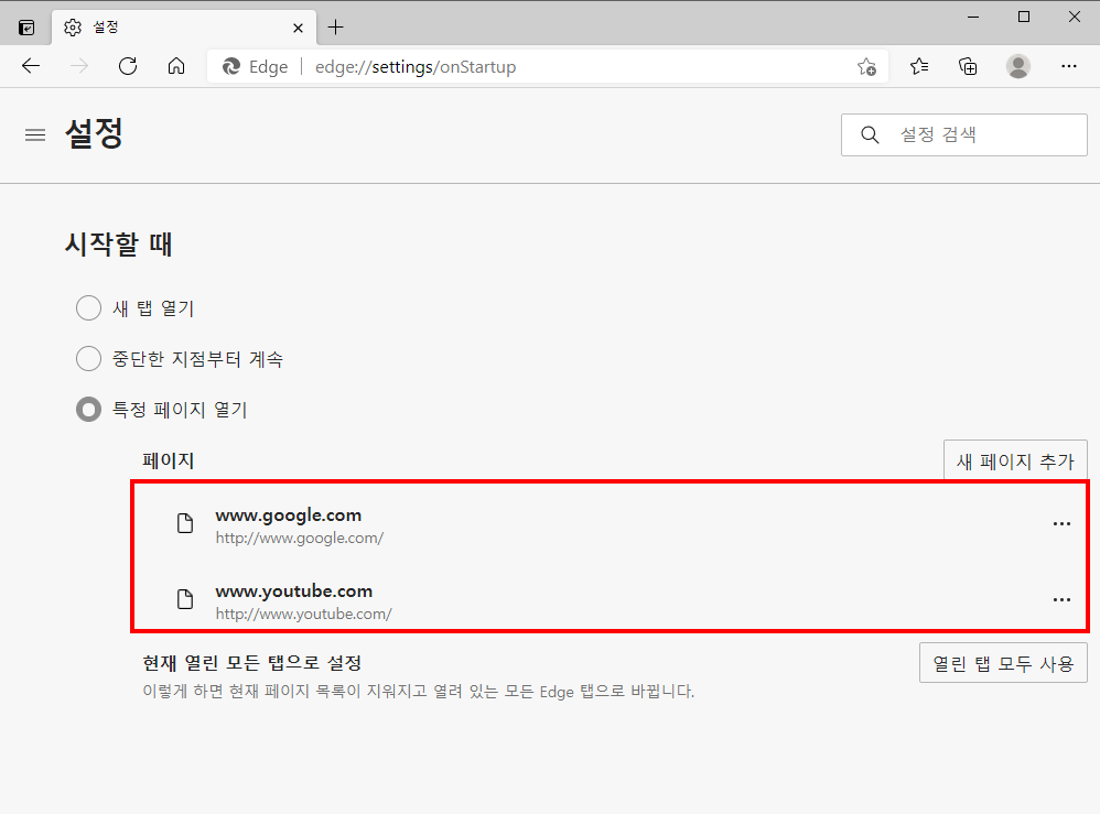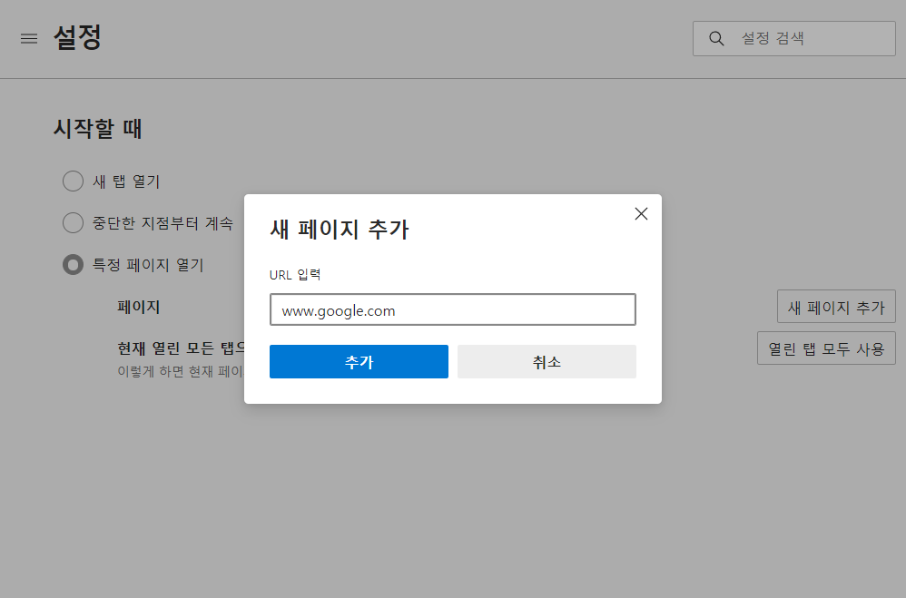 엣지 브라우저 시작 페이지 설정하기(microsoft edge)