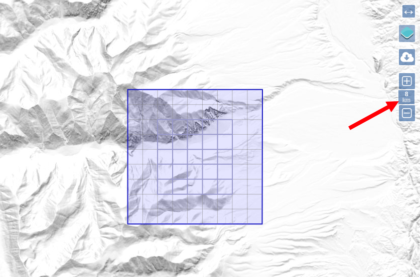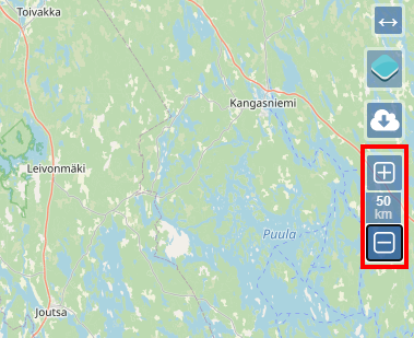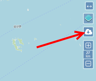 2)우측의 확대 및 축소 버튼을 클릭해서 지도상 선택영역의 크기를 설정한다.