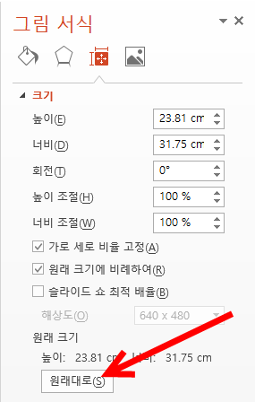 10)이미지의 원래 크기와 비율로 재설정한것을 확인할수있다.