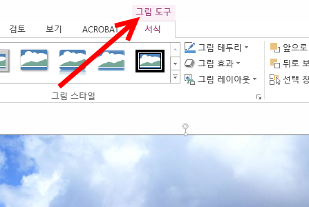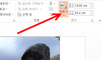 5)이미지를 선택하고 그림도구의 크기에서 자르기를 활성화한다.