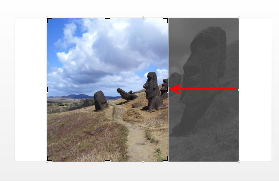 7)이미지의 테두리에 자르기 핸들이 표시되는것을 확인할수있다. 핸들을 클릭 드래그해서 자르기 영역을 설정한다.