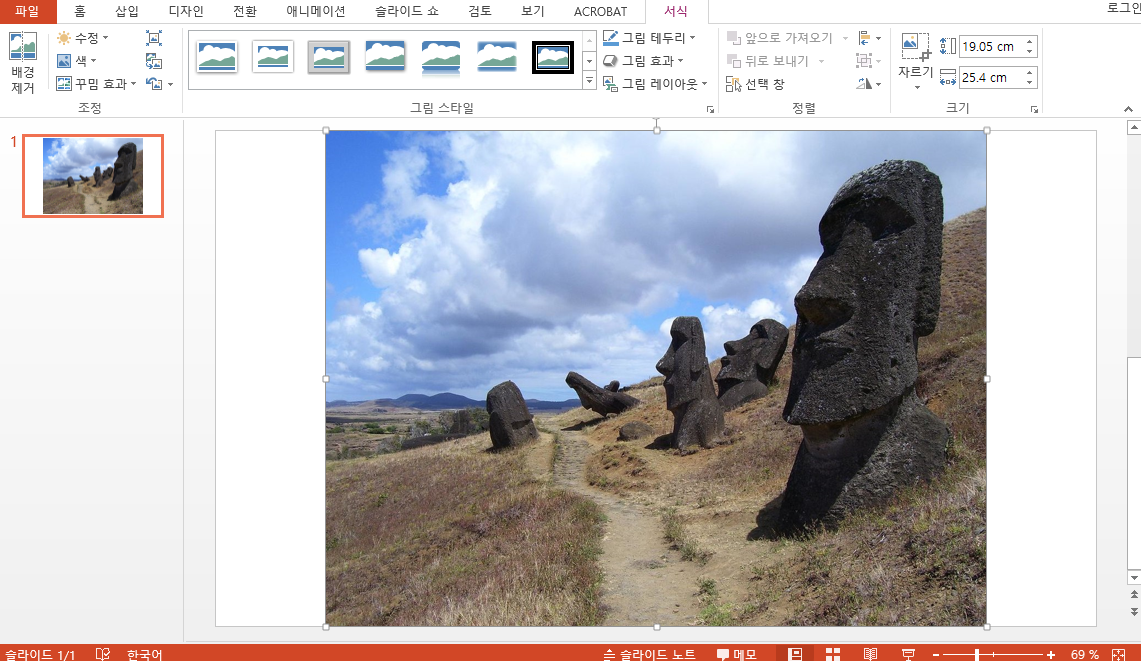 2)슬라이드에 이미지가 삽입된것을 확인할수있다.