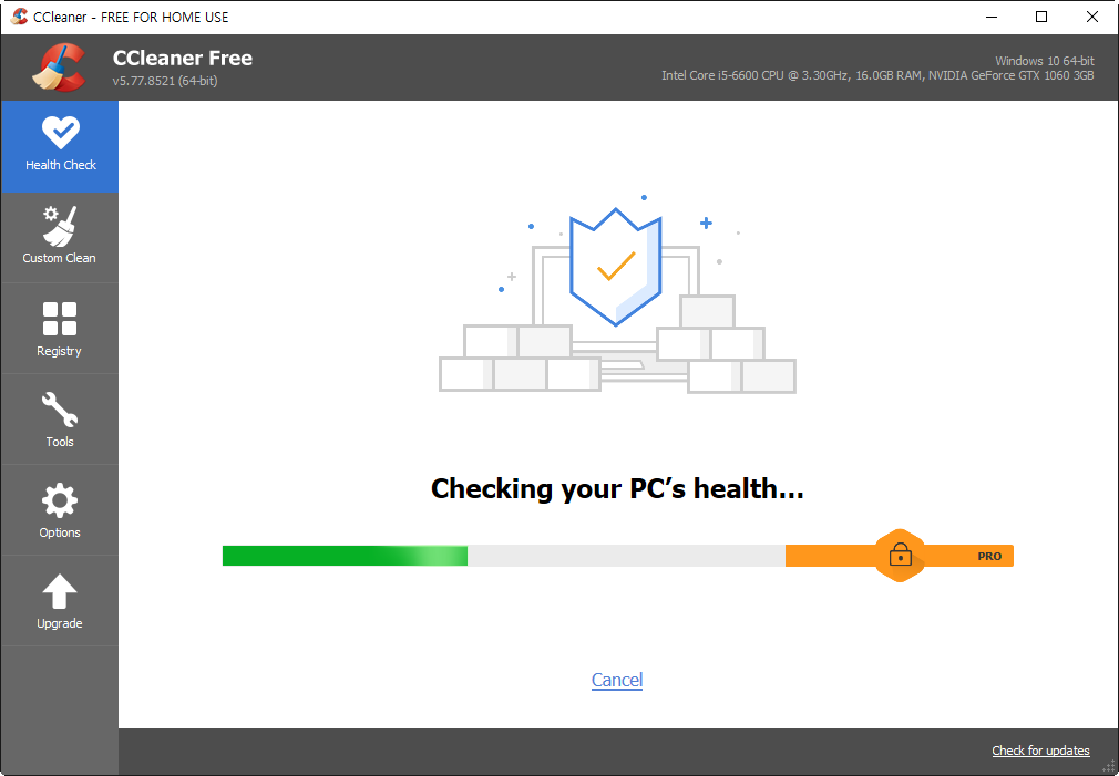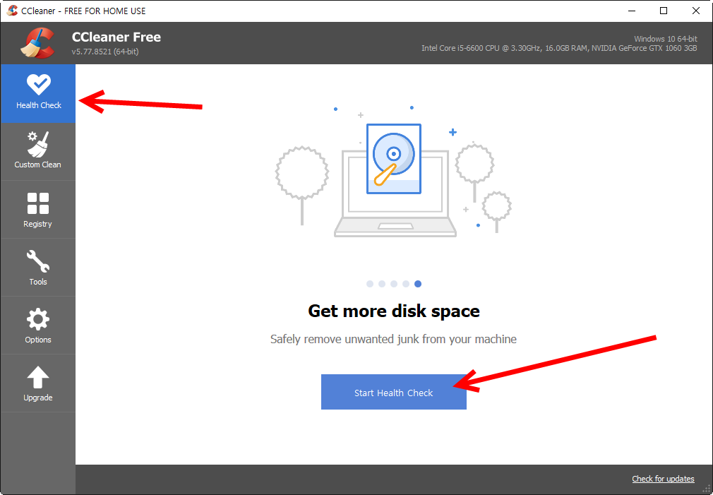 2)health check 메뉴에서 컴퓨터의 상태를 점검하는 기능을 제공한다.