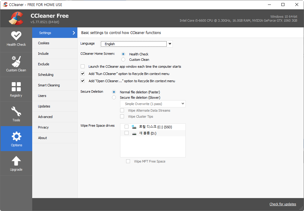 1)홈페이지에서 ccleaner를 다운로드하고 설치를 진행한다.