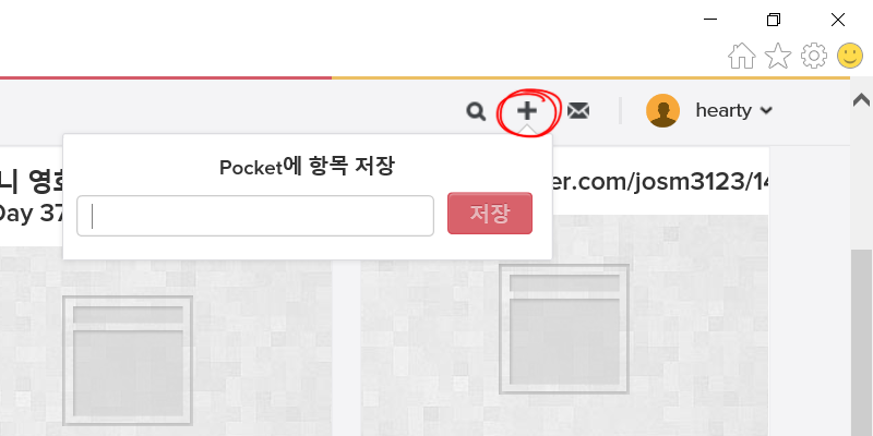11)포켓이 추가된것을 확인할수있다. 포켓을 선택하면 현재 페이지를 저장한다.