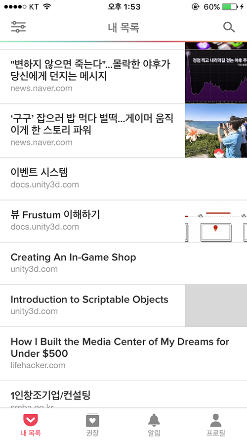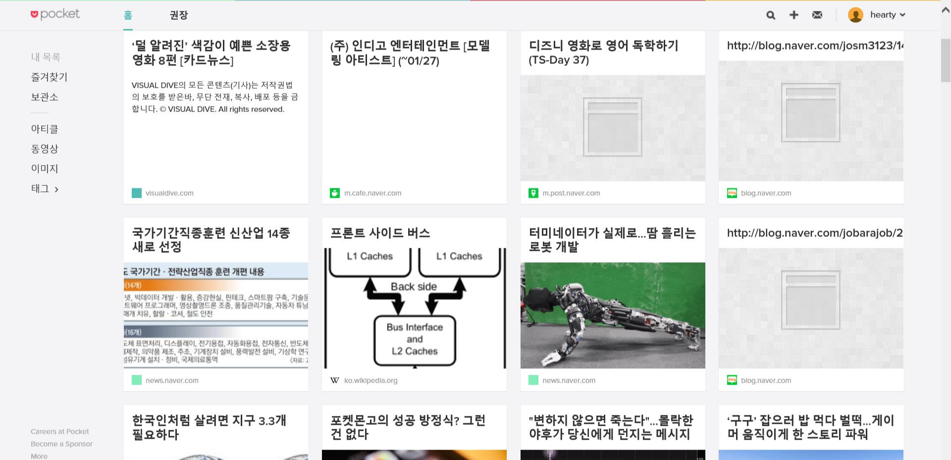 2)pocket 계정으로 저장한 모든 페이지 목록을 확인할수있다.