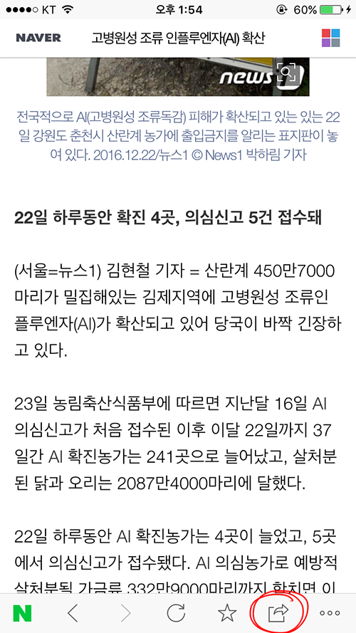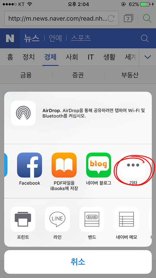8)모바일 브라우저 앱의 하단 공유로 이동한다(safari, 네이버앱, 기타)