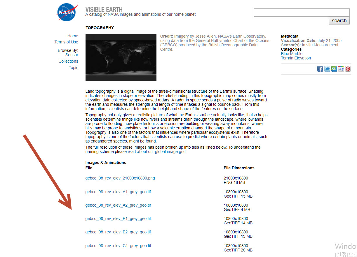 나사에서 제공하는 지구의 높이맵 이미지