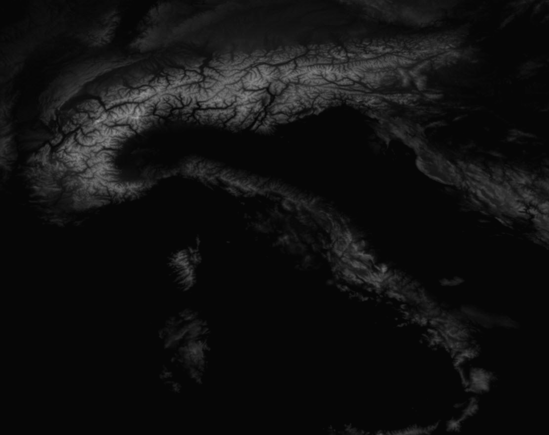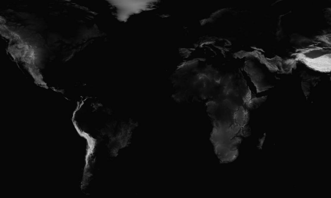 지구 표면의 고도를 디지털이미지로 표현한 지형 맵 소스(Topography)를 제공한다. 레이더로 수집한 지구의 고도 데이터를 기반으로 만든 흑백 음영 이미지이다. 전체 지도는 21600x10800 고해상도 사이즈로 여섯개의 영역으로 나누어 제공한다(10800x10800) 지형의 경사, 고도, 산맥, 강의 흐름등을 살펴보는데에 유용하다.