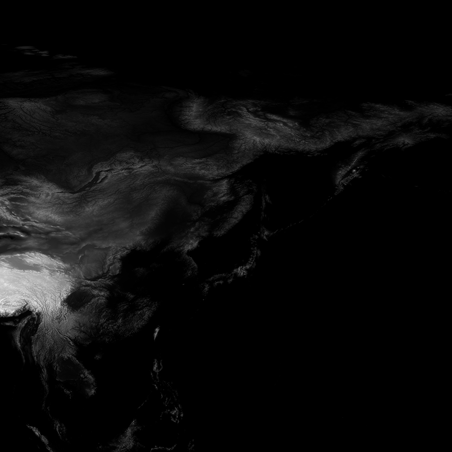 지구 표면의 고도를 디지털이미지로 표현한 지형 맵 소스(Topography)를 제공한다. 레이더로 수집한 지구의 고도 데이터를 기반으로 만든 흑백 음영 이미지이다. 전체 지도는 21600x10800 고해상도 사이즈로 여섯개의 영역으로 나누어 제공한다(10800x10800) 지형의 경사, 고도, 산맥, 강의 흐름등을 살펴보는데에 유용하다.