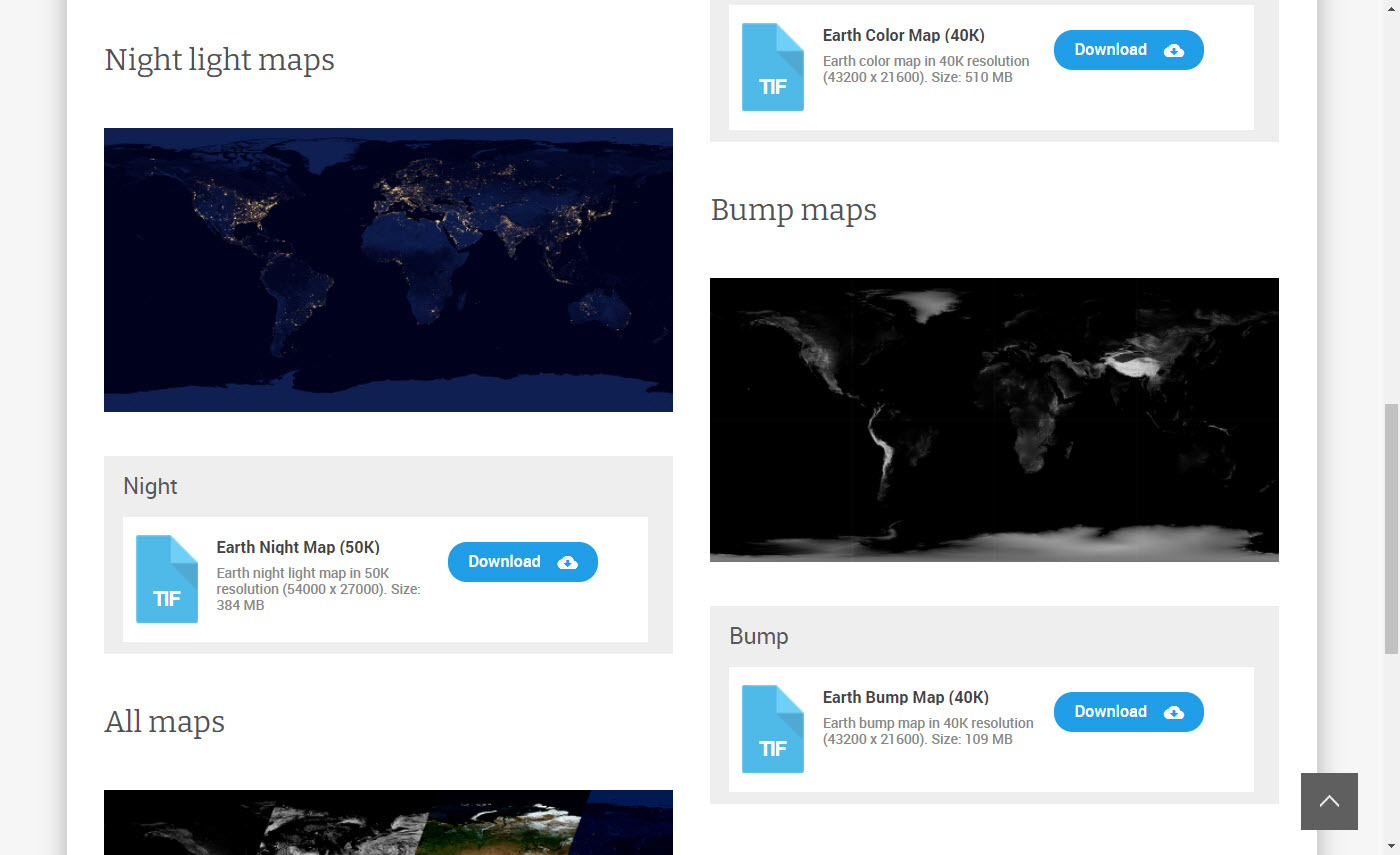 초고해상도의 지구 텍스처 이미지 맵을 다운로드할수있는 웹사이트이다. 제공하는 맵은 아래와 같다