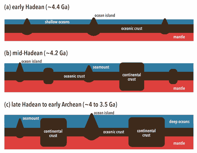 명왕누대(Hadean Eon) 대륙 지각과 심해의 변화