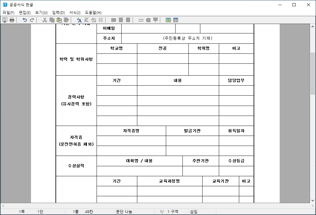 공공기관의 민원서식을 작성할때 사용할수있는 무료 한글문서 편집 프로그램(hwp파일 편집)