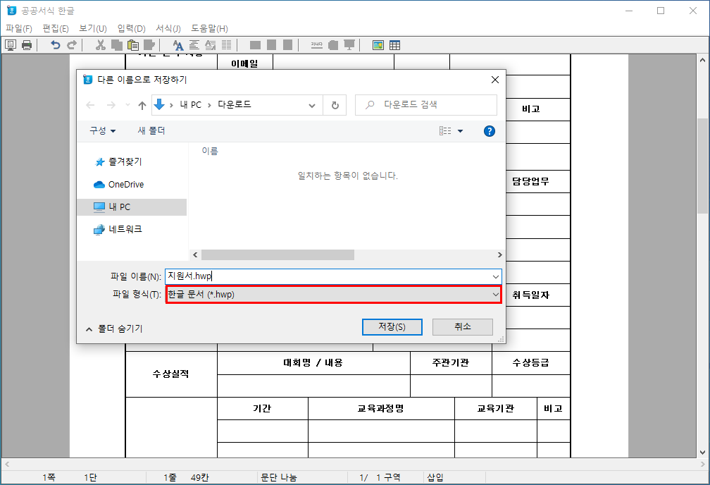 3)공공서식 한글을 다운로드한다.