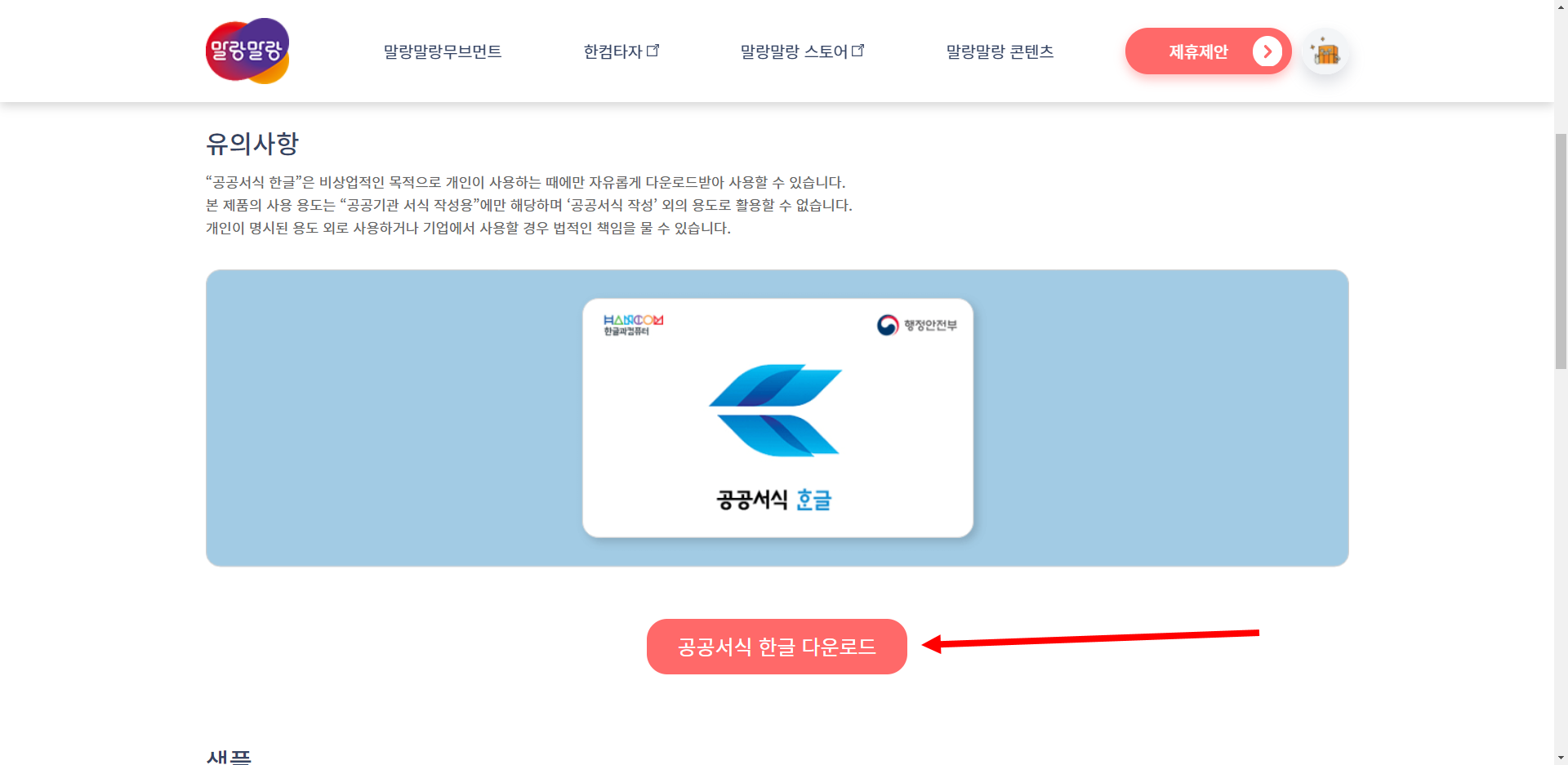 1)한글과컴퓨터의 말랑말랑 웹사이트로 이동한다.