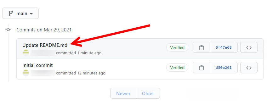 11)사용자가 업데이트한 커밋(commits)에 대한 히스토리를 확인할수있다.
