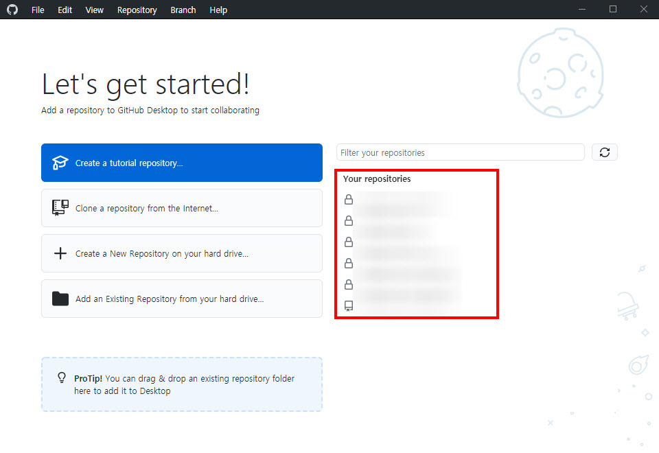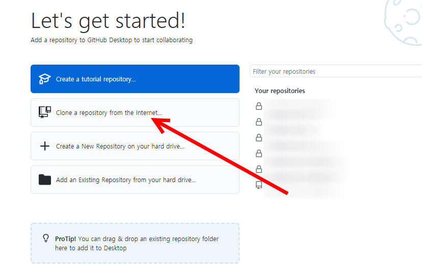 데스크톱에 깃허브 리포지토리 복사하고(clone), 새로운 유니티 프로젝트 생성하기