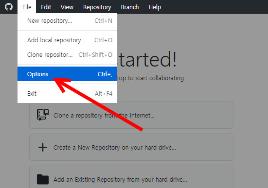 3)상단 file 메뉴의 options으로 이동한다.
