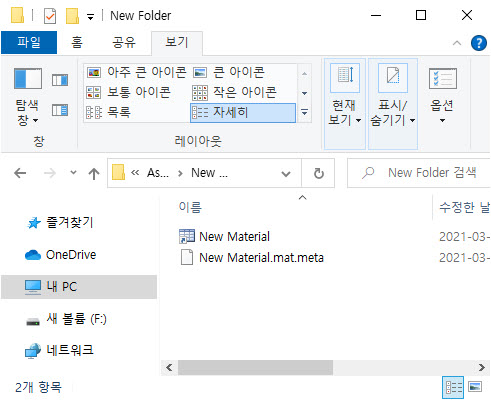 6)프로젝트의 에셋 폴더 디렉토리에서 해당 에셋의 메타파일이 표시되는것을 확인할수있다(visible meta files)