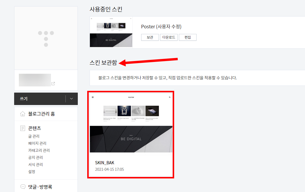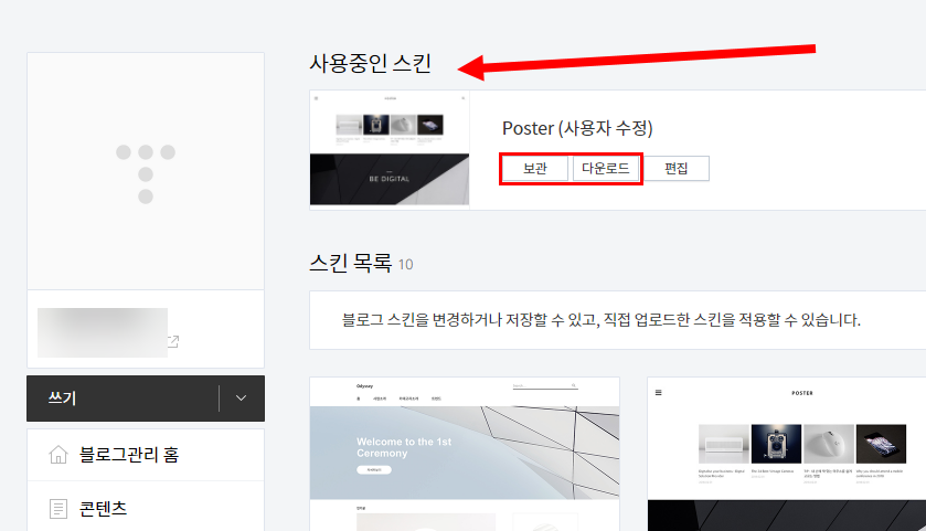티스토리 블로그 스킨 백업하기(다운로드, 스킨보관)