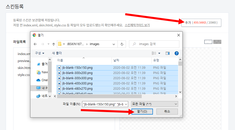5)스킨 폴더에서 images 폴더를 제외한 모든 파일을 선택하고 추가한다.