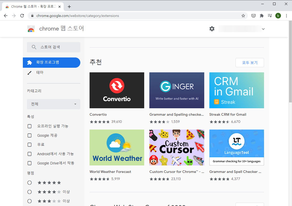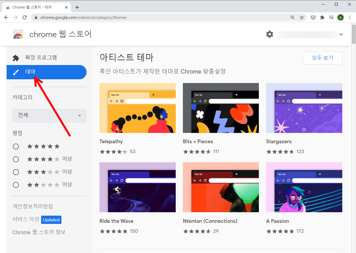 3)테마로 이동하면 크롬에서 제공하는 다양한 테마를 확인할수있다.