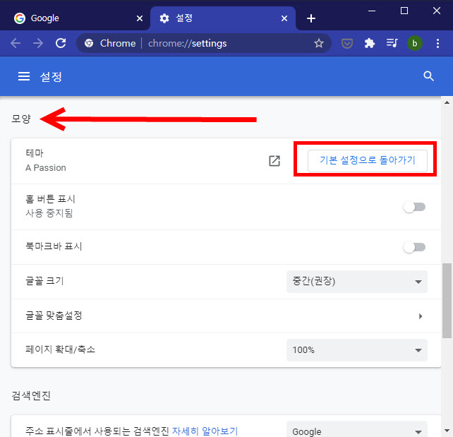 5)페이지 상단 탭의 색상 및 테마가 변경된것을 확인할수있다.