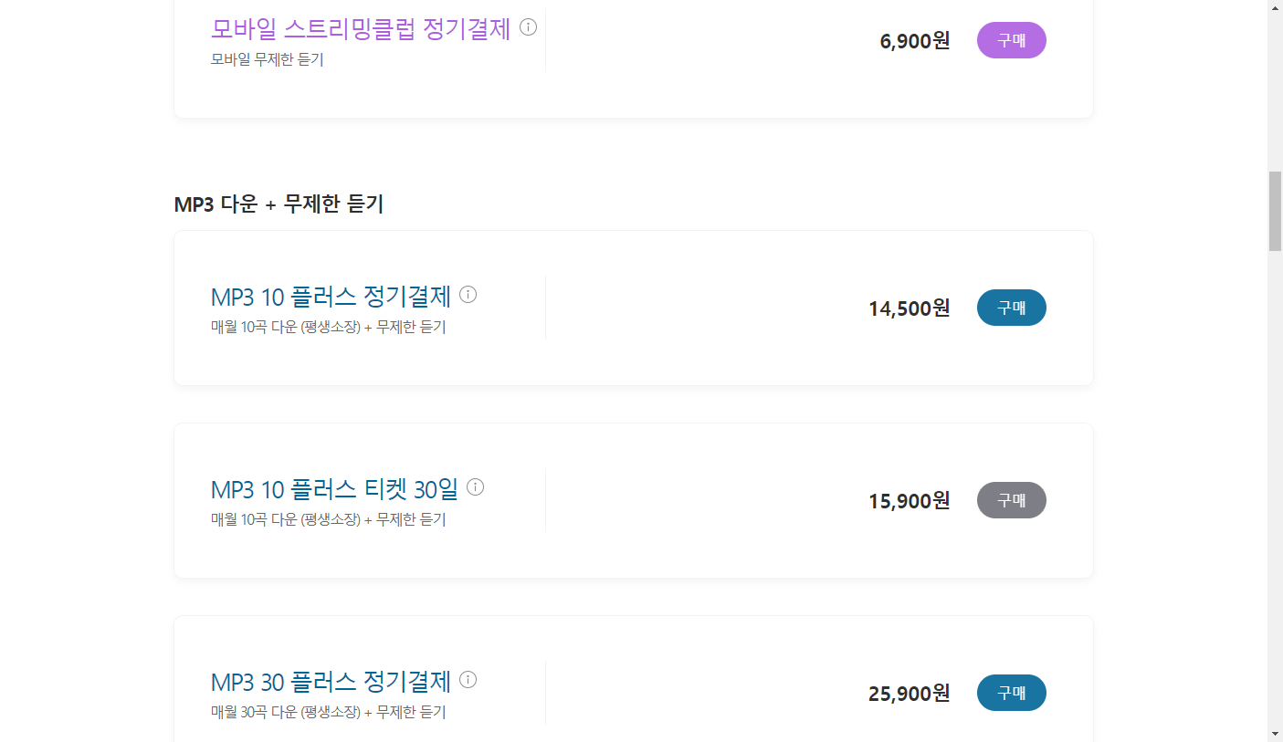 4)다양한 유형의 멜론 이용권을 확인할수있다. 이용권을 선택 및 구매한다.