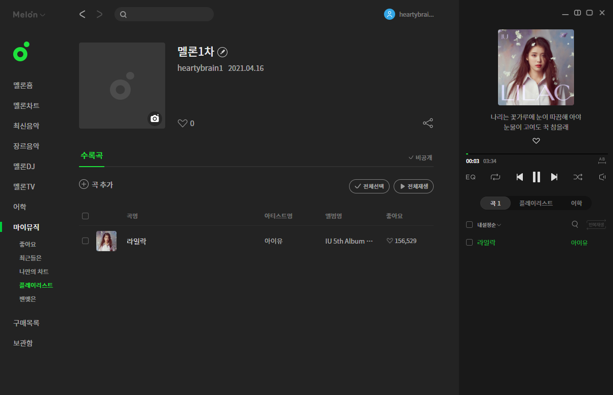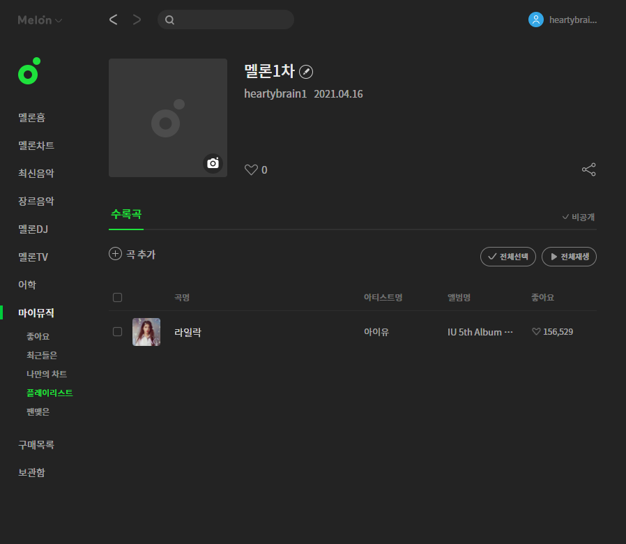 13)플레이리스트에 새로운 음악이 추가된것을 확인할수있다.