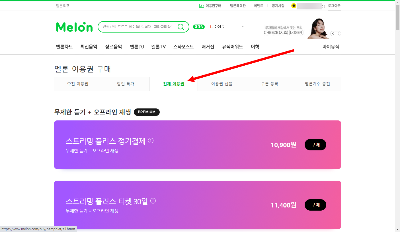 멜론 이용권 구매하기