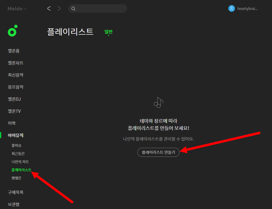 11)마이뮤직에서 새로운 플레이리스트를 추가한다.