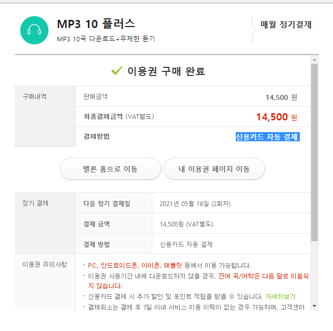 멜론(melon) 이용권 구매하고 음악 서비스 이용하기