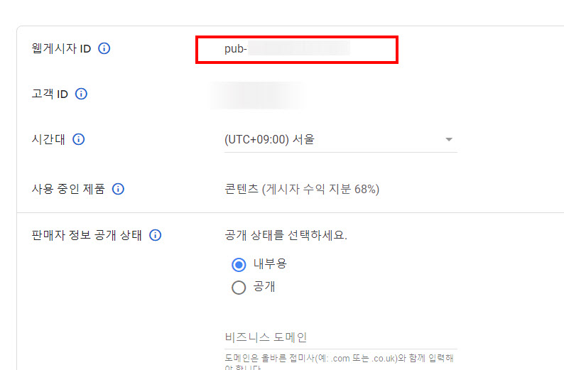 구글 애드센스에서 게시자ID 확인하기