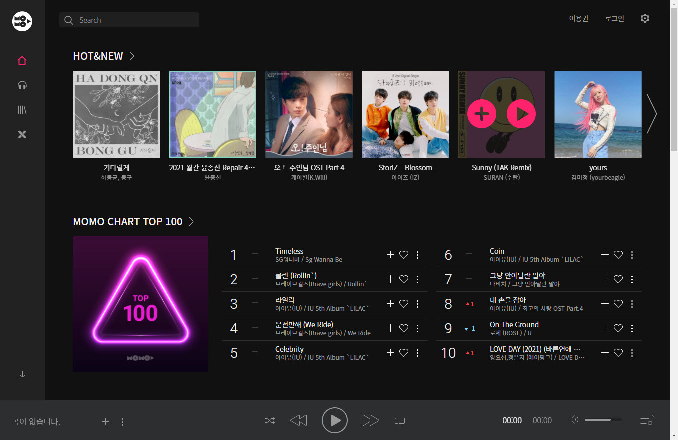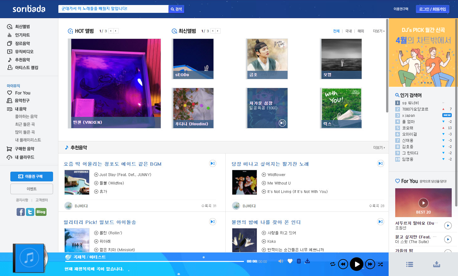 음악추천, 장르 필터링, 실시간 음원 스트리밍, 음원 다운로드, 기타 서비스를 제공한다.