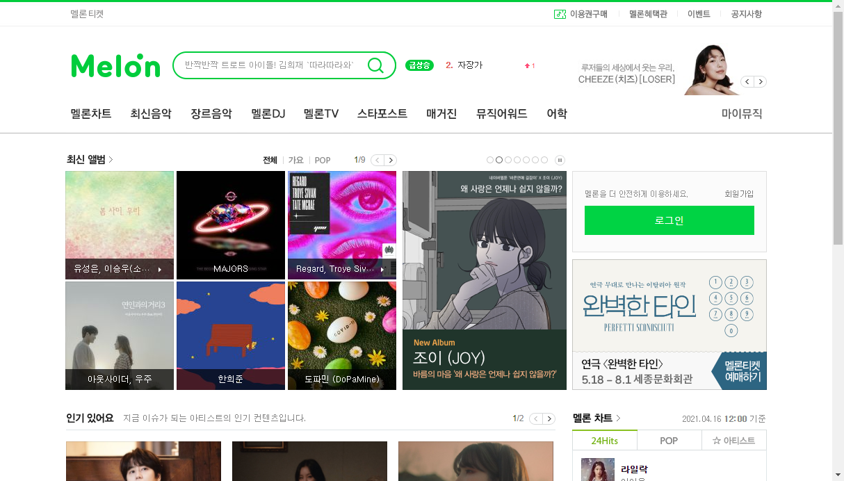 | 멜론(melon) 이용권 구매하고 음악 서비스 이용하기 (0) | 2021.04.22 |