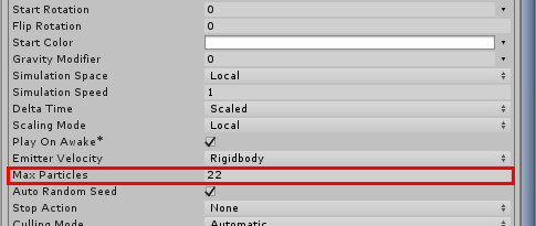 1)씬에 새로운 파티클을 생성하고 최대 파티클 개수를 설정한다(max particles)