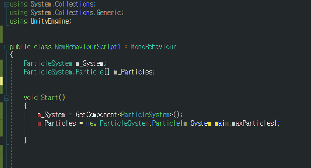 2)스크립트에서 파티클시스템 변수와 파티클 배열을 선언한다.