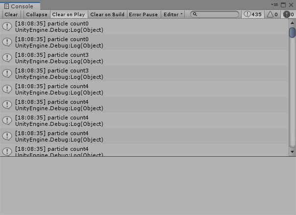 4)게임을 플레이하면 활성화된 파티클의 개수를 출력한다.