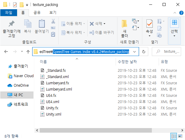 10)스피드트리 설치 경로에서 texture_packing 폴더로 이동한다.
