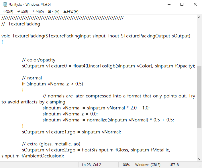 11)unity.fx(유니티) 또는 UE4.fx(언리얼) 파일을 메모장에서 열기한다.