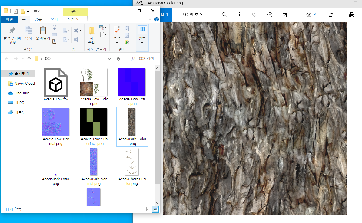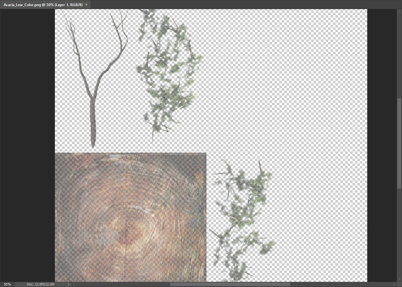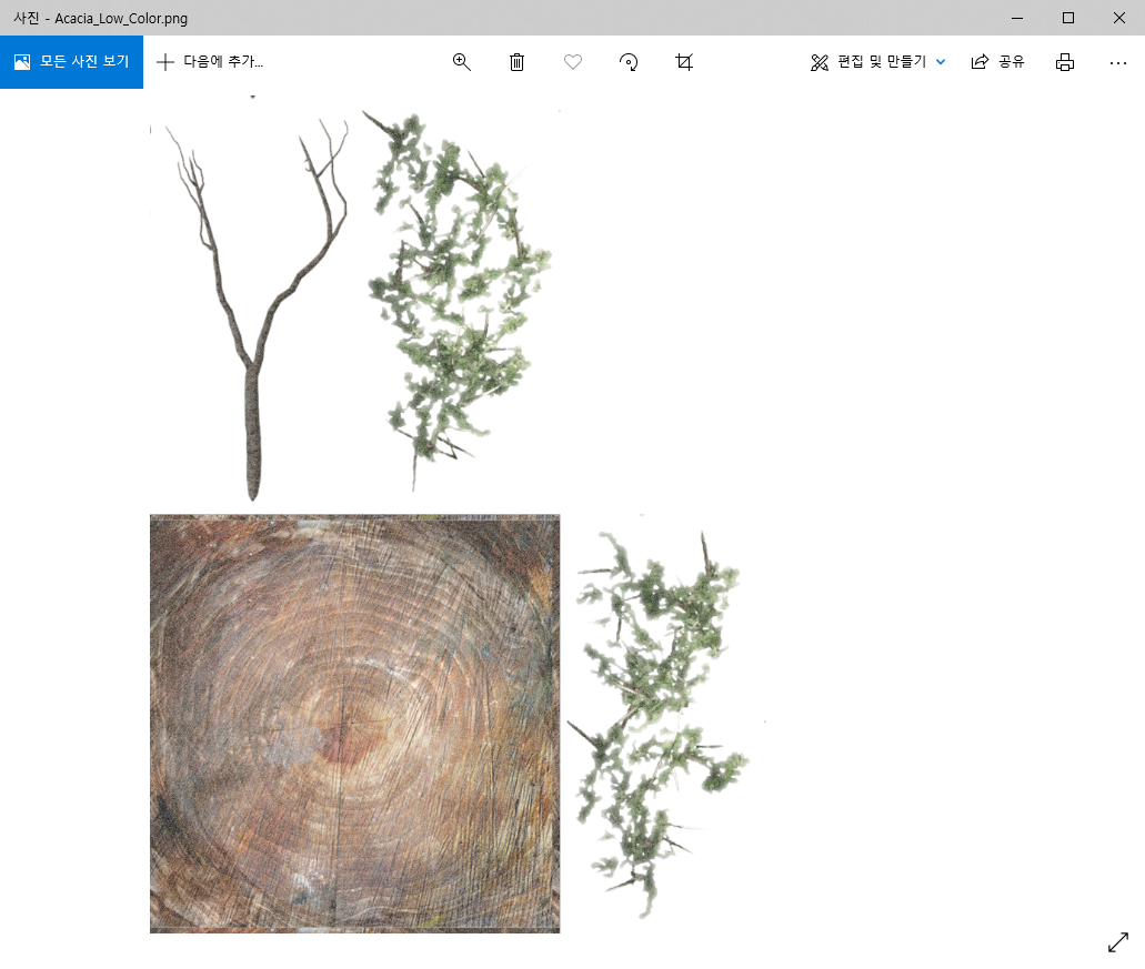 13)스피드트리에서 저장한 텍스처에 노이즈가 추가되지않은것을 확인할수있다.