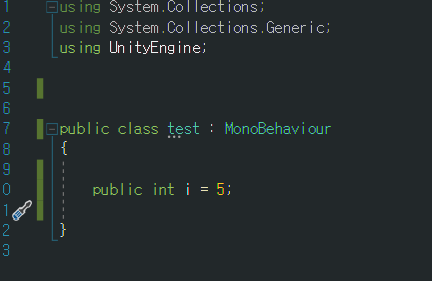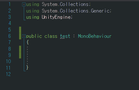 1)스크립트를 생성한다(test.cs)