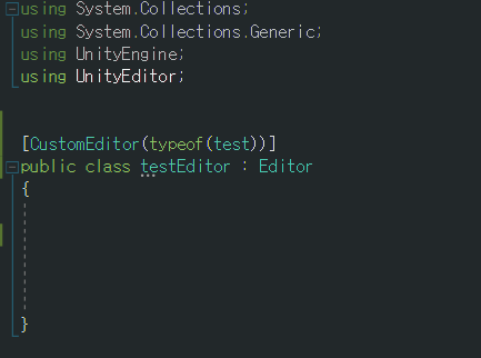 testEditor.cs(에디터 스크립트)는 test.cs와 구별하여 Editor 폴더에 위치시킨다.
