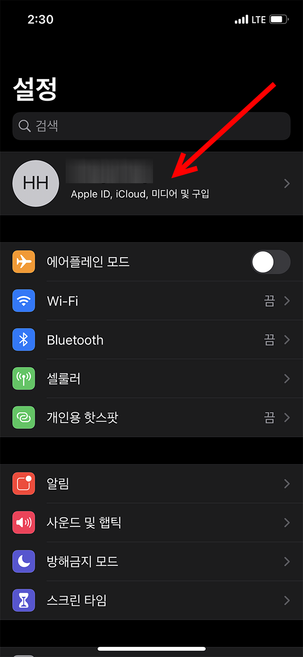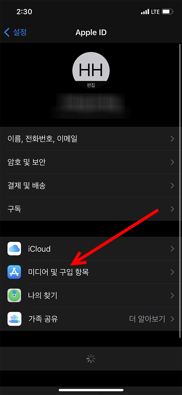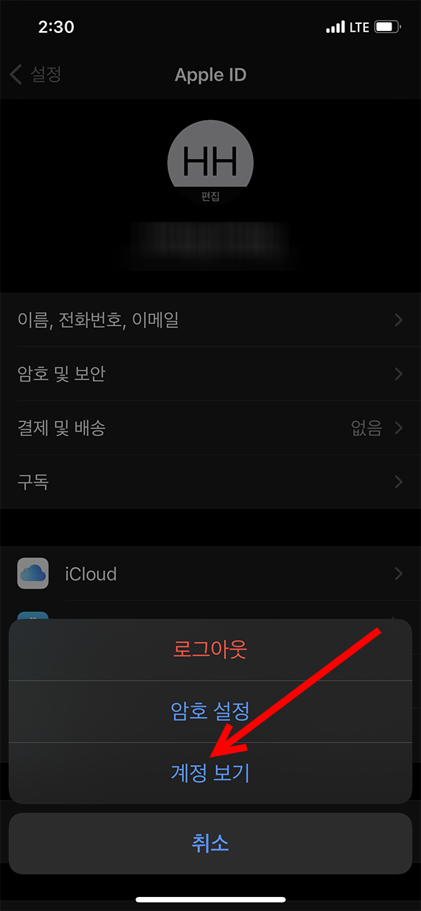 아이폰에서 앱스토어에 로그인하는데 사용되는 애플계정의 국가를 변경하는 방법이다. 아래는 미국계정을 한국계정으로 변경하는 과정이다.