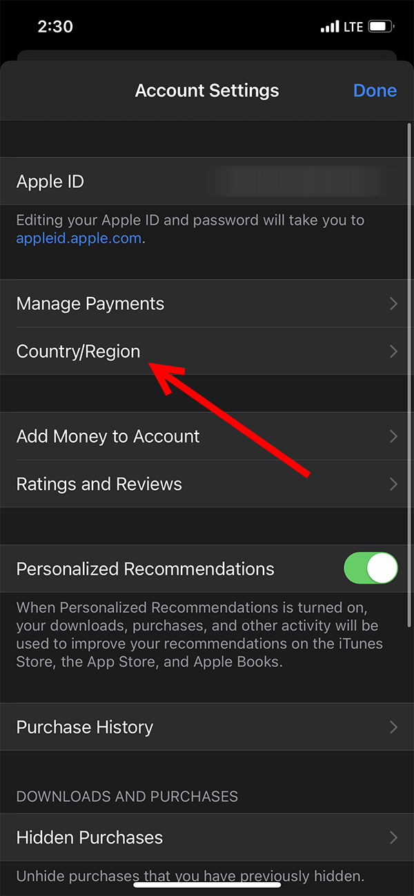 6)애플계정에서 사용할수있는 국가 목록을 확인할수있다.