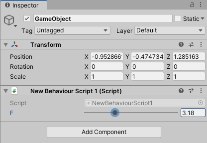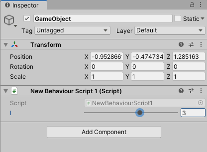 유니티 에디터에서 스크립트의 정수, 실수값을 슬라이더로 표시하기