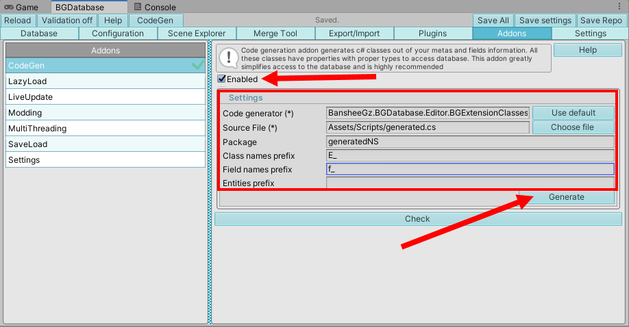 유니티 BGdatabase에서 코드 생성(code generation)사용하기