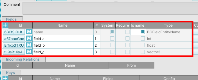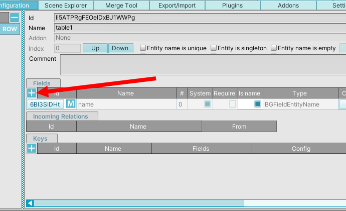 8)아래 표시한 +아이콘을 클릭하면 테이블의 행을 추가하며(entity) 필드의 타입에 대한 값을 입력하여 데이터를 생성 및 관리할수있다.