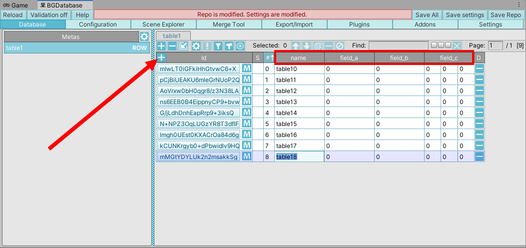 유니티 BGdatabase에서 데이터베이스 관리하기(테이블, 필드, 행)