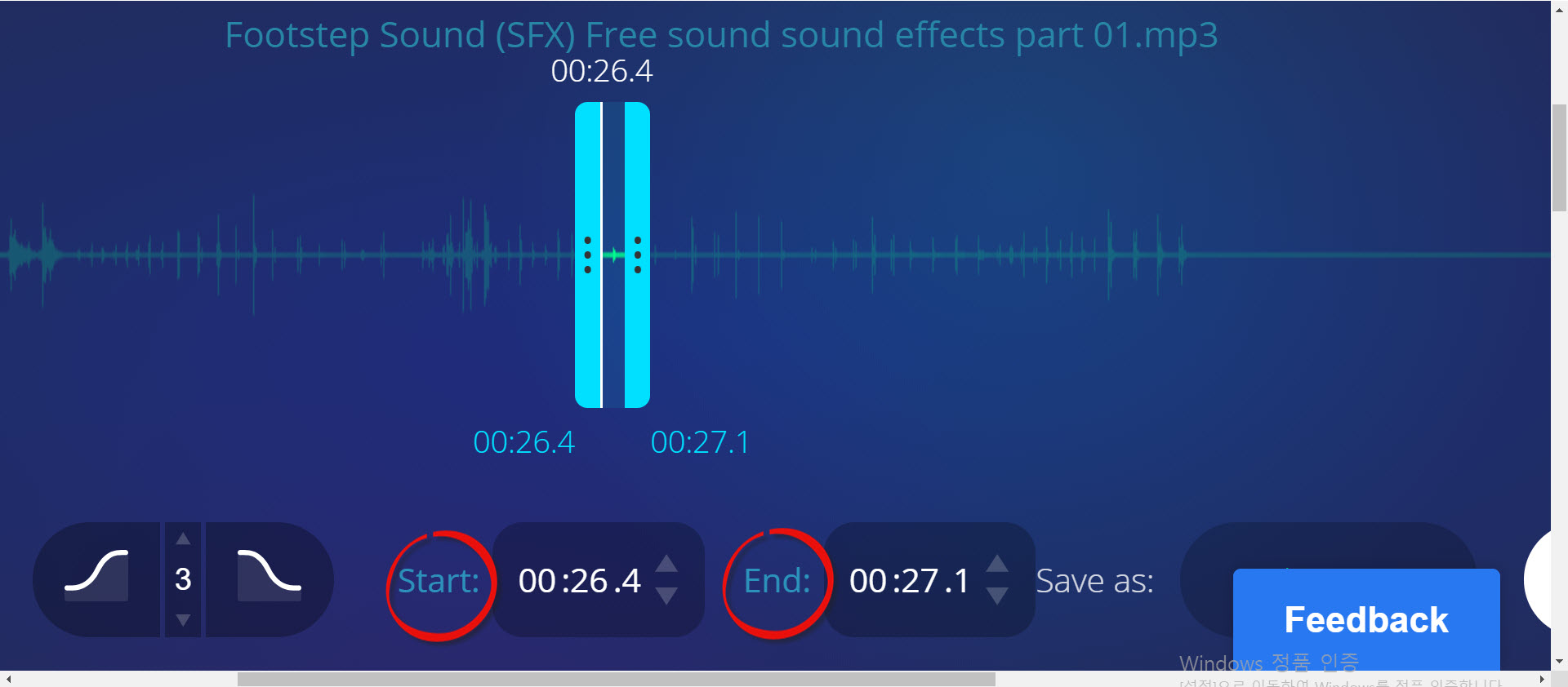 5)또는 하단의 start, end에 수치를 입력해서 길이를 설정할수있다(웹브라우저를 확대해서 세밀하게 편집)